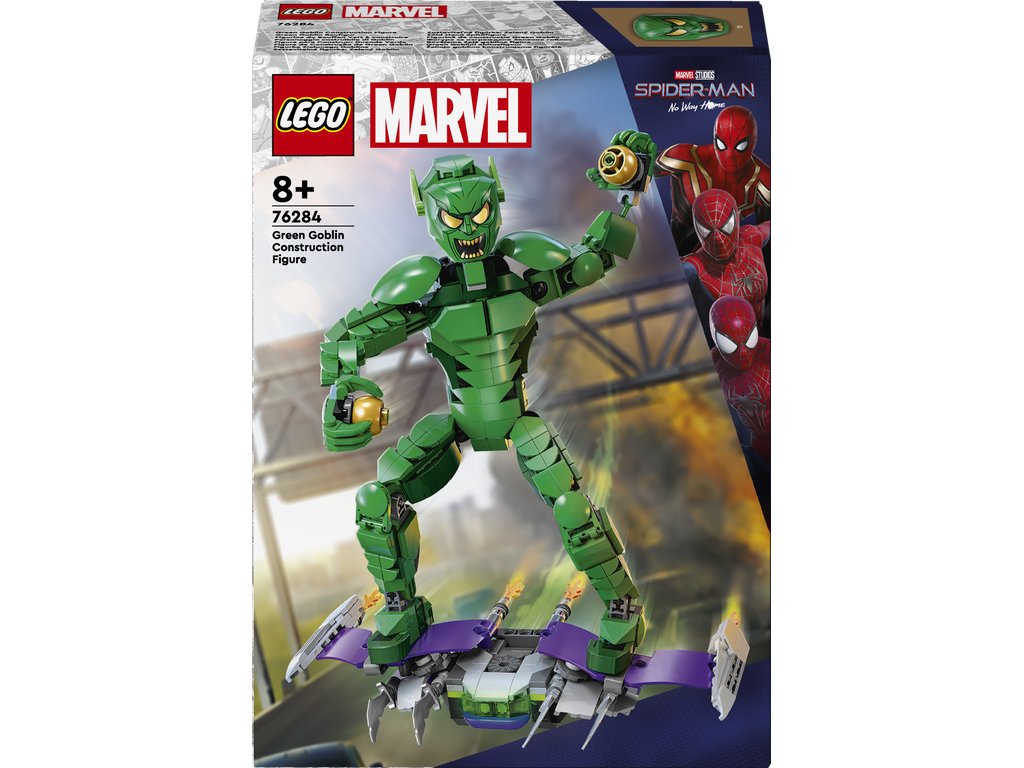 Otevřete dětem bránu do filmových dobrodružství ze světa Marvel s pohyblivou figurkou LEGO® Marvel (76284) Sestavitelná figurka: Zelený Goblin, dokonalým modelem padoucha ze světa Spider-Mana pro děti od 8 let.
