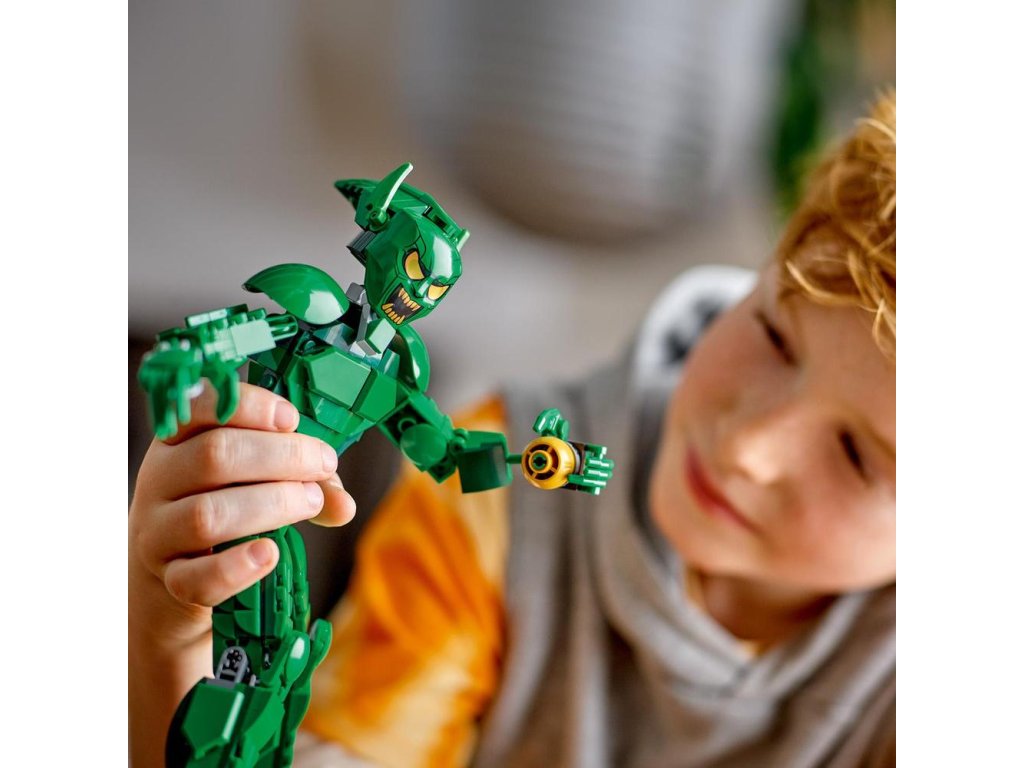 Tento sběratelský model padoucha ze světa Marvel představuje zábavný dárek pro malé superhrdiny, kteří se s ním mohou těšit na stavění, hraní i vystavování. Figurka má pohyblivé klouby ramen, paží, kyčlí a nohou, takže s ní děti vytvoří parádní akční pózy a vydají se na napínavé mise. Propracovaný Zelený Goblin má 2 dýňové bomby a slavný kluzák. Bomby lze vložit do rukou postavy nebo do úložného prostoru v zadní části kluzáku. Hračka je ideální pro nezávislé hraní rolí. Pro ještě více digitální zábavy stavitelé mohou přibližovat a otáčet stavebnice ve 3D a sledovat svůj pokrok v intuitivní aplikaci LEGO Builder.