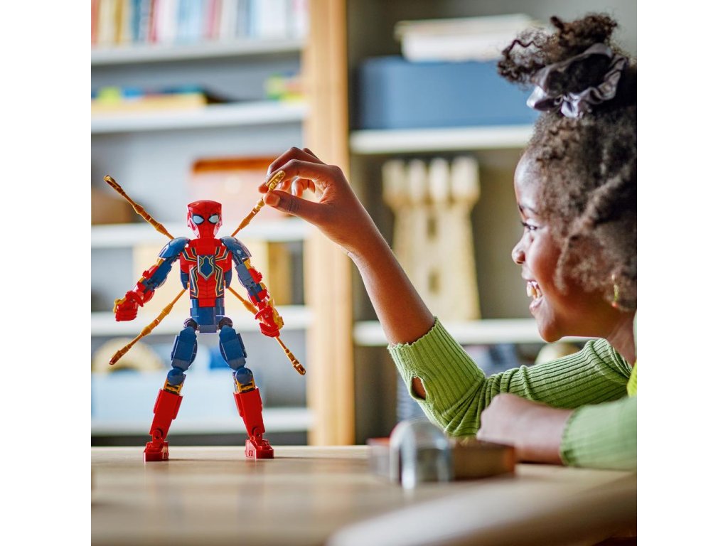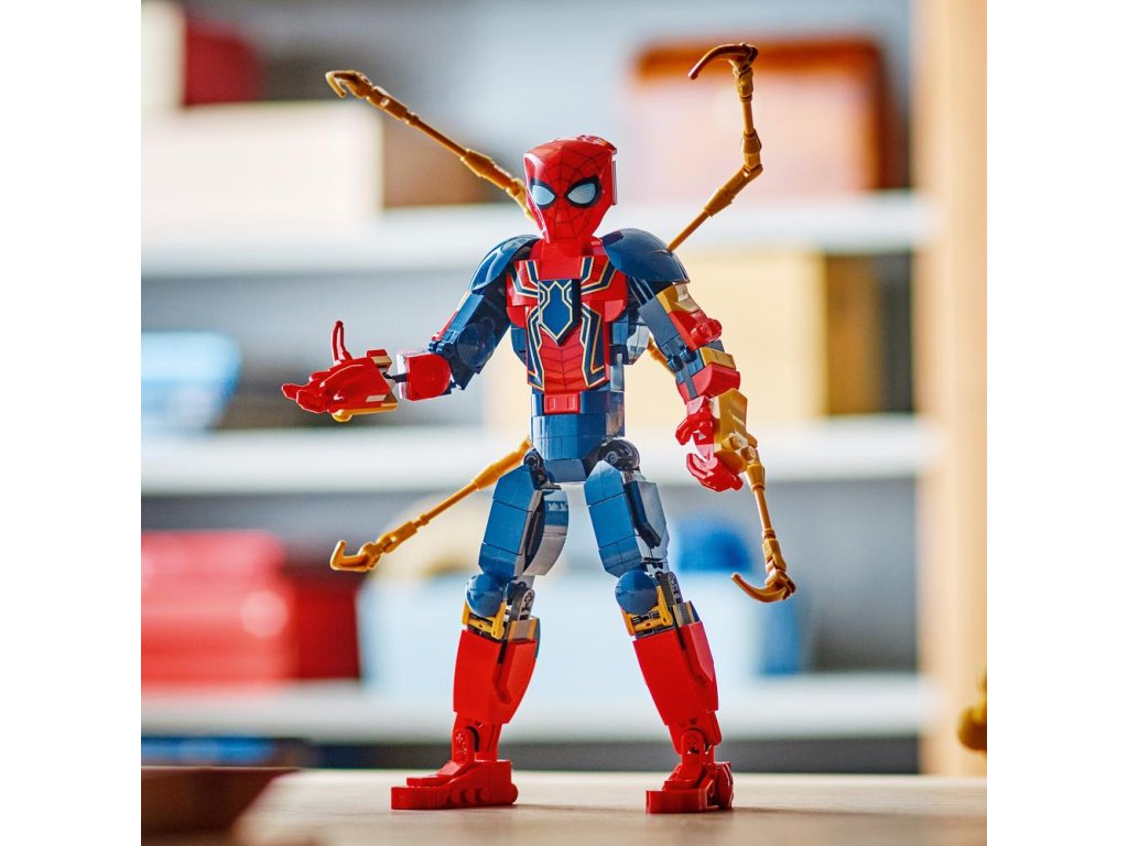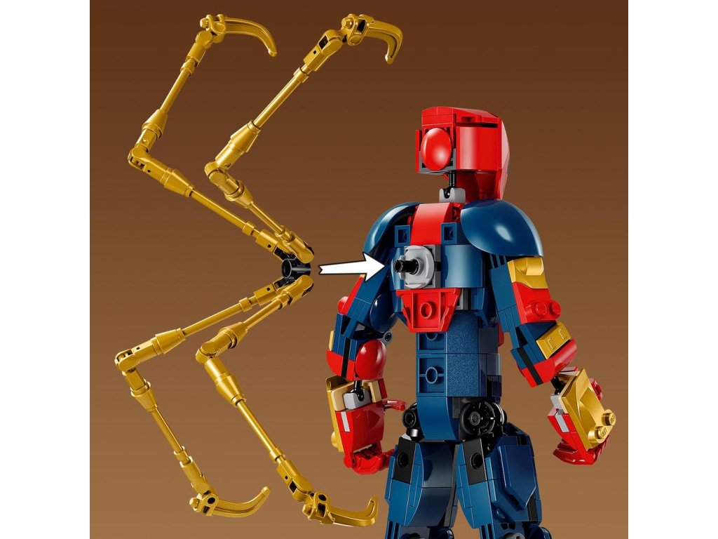 Figurka superhrdiny měří přes 27 cm na výšku a má pohyblivé klouby ramen, paží, kyčlí a nohou a děti se s ní mohou vydat na dynamická dobrodružství. Hrdina na sobě má moderní oblek Iron Spider-Mana vytvořený Tonym Starkem. Nechybí jí 4 plně pohyblivé robotické paže. Pro ještě více digitální zábavy stavitelé mohou přibližovat a otáčet stavebnice ve 3D a sledovat svůj pokrok v intuitivní aplikaci LEGO Builder.