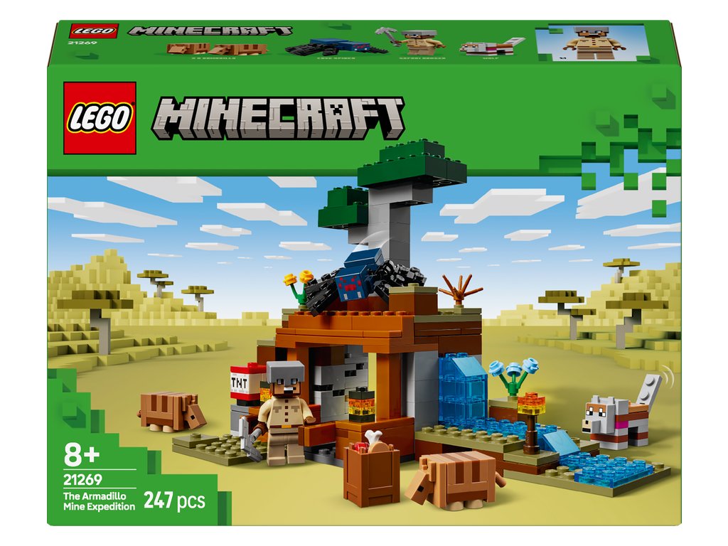 Se stavebnicí Výprava do dolu a pásovec (21269) fanoušci Minecraftu přesunou svou oblíbenou videohru do skutečného světa. Tato napínavá stavebnice LEGO® Minecraft® se skvělými postavami a zábavnými funkcemi je plná nápaditých herních možností pro děti od 8 let.