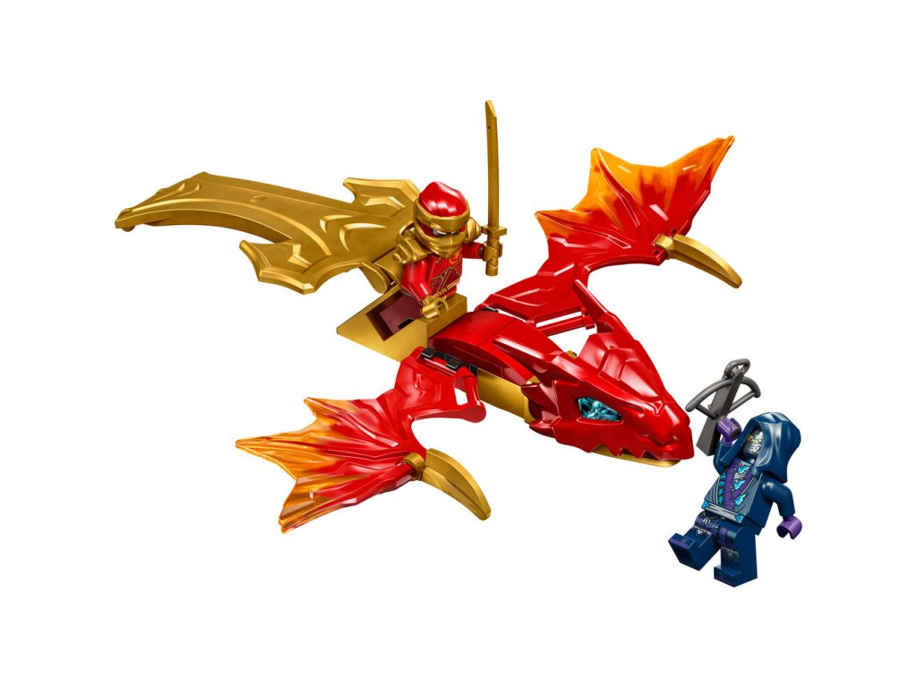 Součástí stavebnice jsou 2 minifigurky: Drak Kaie s katanou a schopností jezdit na hřbetu sestavitelné akční figurky draka a stráž s vlčí maskou se samostřílem. Malí nindžové si budou přehrávat bitvy mezi postavami ze světa LEGO NINJAGO a získají modrý dílek dračí síly, který se ukrývá v otevírací tlamě akční figurky draka.