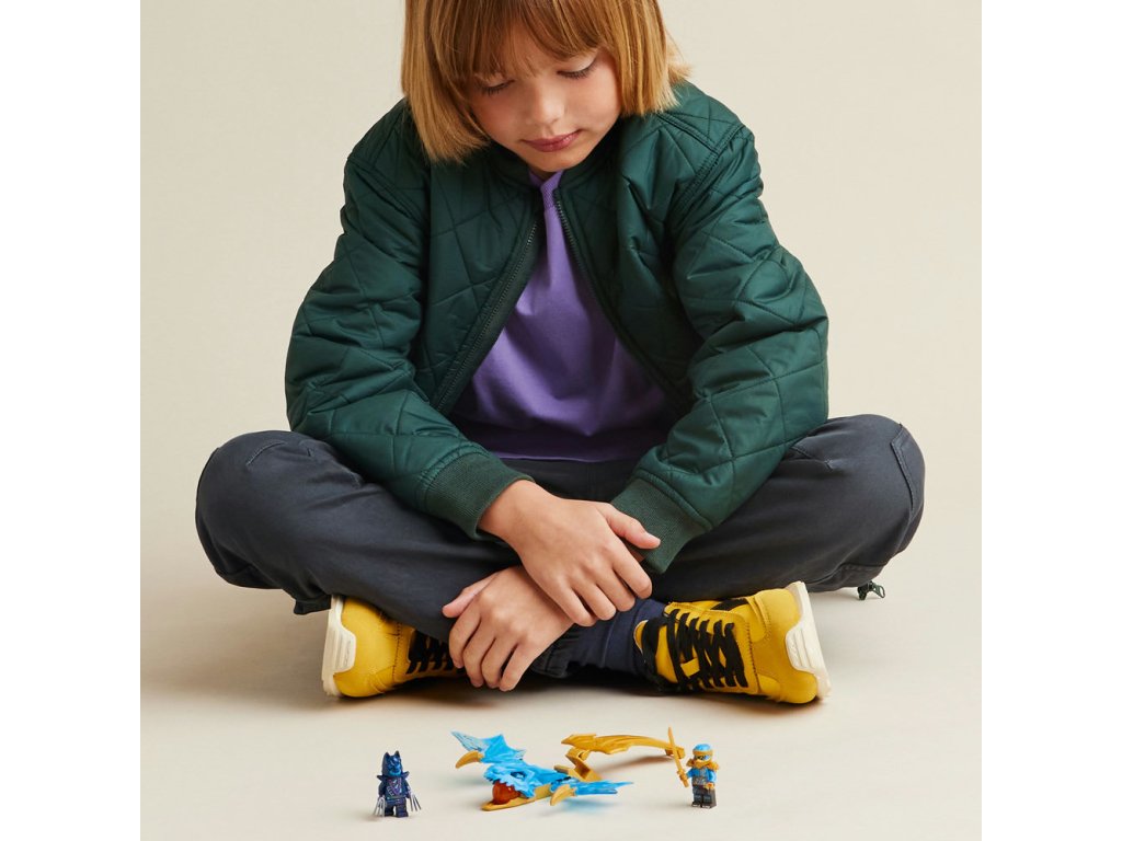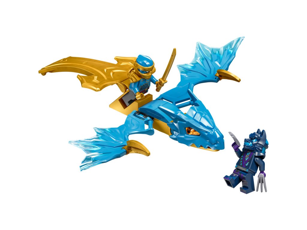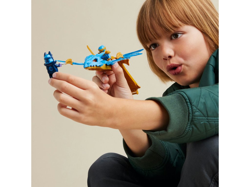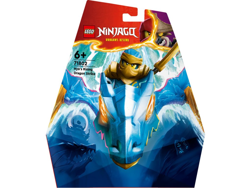 Děti od 6 let se stavebnicí Nya a útok draka (71802) z kostek LEGO® znovu prožijí akční scény z 2. řady televizního seriálu NINJAGO® Dračí povstání. Malí stavitelé si tuto akční hračku draka LEGO NINJAGO přímo zamilují – sklopí zlatý ocas draka a budou sledovat, jak se pouští do akce.