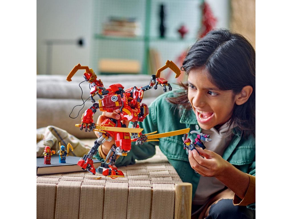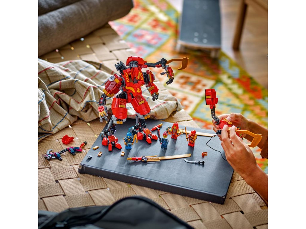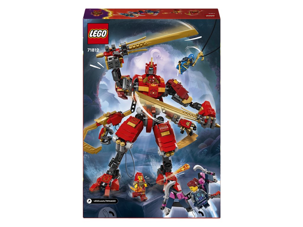Děti od 9 let si se stavebnicí Kaiův nindžovský robotický oblek (71812) připomenou bitvy v Lese stínů z 2. řady televizního seriálu NINJAGO® Dračí povstání. Součástí stavebnice je velkolepý nindžovský oblek v Kaiově červené barvě, kterému nechybí 2 háky na zádech, s nimiž je lezení hračka (a které lze také využít jako háky na vystavení modelu, až si děti dohrají), pohyblivé paže, nohy, trup, hlava a chodidla, 2 velké katany a kokpit pro minifigurku.