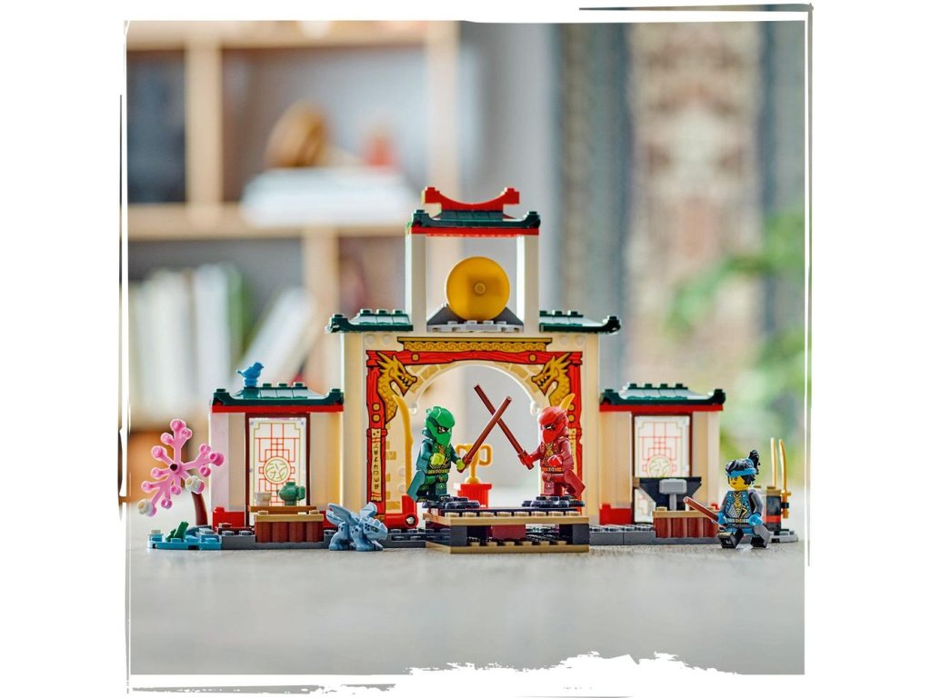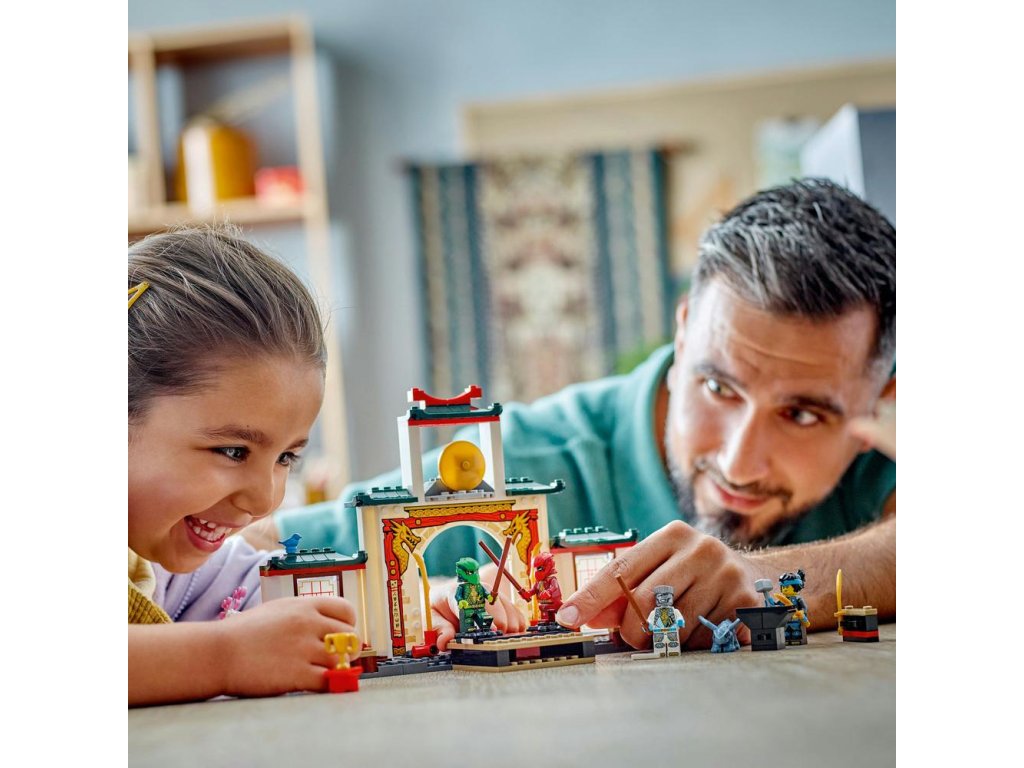 Potěšte malé milovníky nindžů stavebnicí LEGO® NINJAGO® (71831) Chrám nindžů Spinjitzu. S touto stavebnicí si děti od 4 let připomenou si dobrodružství ze 3. řady televizního seriálu NINJAGO Dračí povstání. Tato nindžovská stavebnice je ideální pro hraní a obsahuje turnajové pódium NINJAGO, zahradu, čajovnu a prostor pro trénink se zbraněmi.