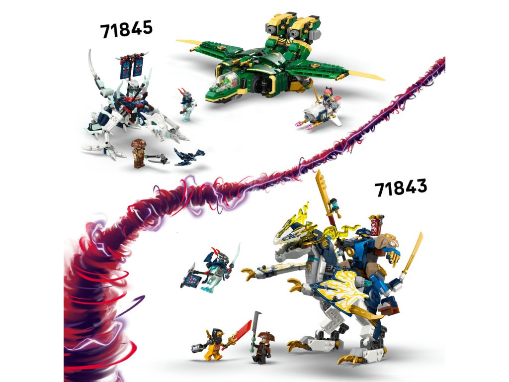 • Velké vozidlo NINJAGO® lze rozdělit na 2 motorky a tryskáč