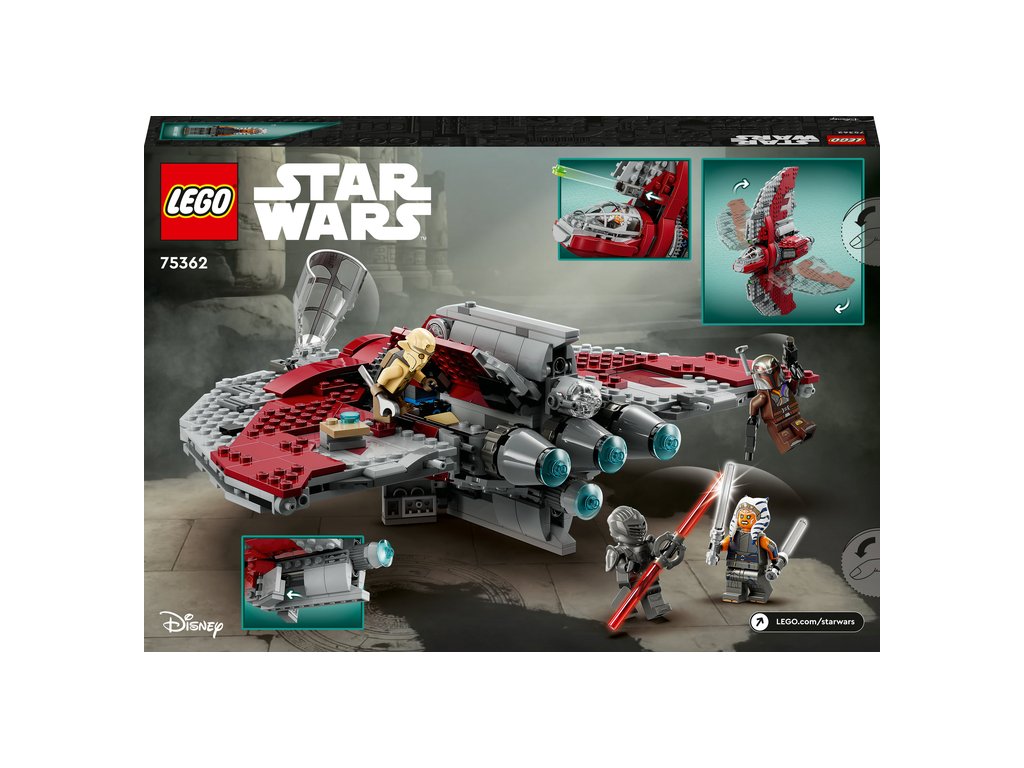 S neuvěřitelně propracovanou stavebnicí Jediský raketoplán T-6 Ahsoky Tano (75362) z kostek LEGO® si děti mohou připomenout dobrodružství ze seriálu Star Wars: Ahsoka. Tento sestavitelný model lodě má otevíratelný kokpit pro minifigurky LEGO, podvozek, který lze snadno zatáhnout pro uvedení do letového režimu, 2 vystřelovače a 2 úložné prostory pro nástroje a zbraně. Tato akční stavebnice poslouží jako zábavný dárek pro děti od 9 let a nechybí v ní také zbrusu nové minifigurky LEGO, které vyjdou v září 2023 – Ahsoka Tano, Sabine Wren, profesor Huyang a Marrok. Součástí jsou také světelné meče, blastery a další prvky, které inspirují ke kreativnímu hraní.