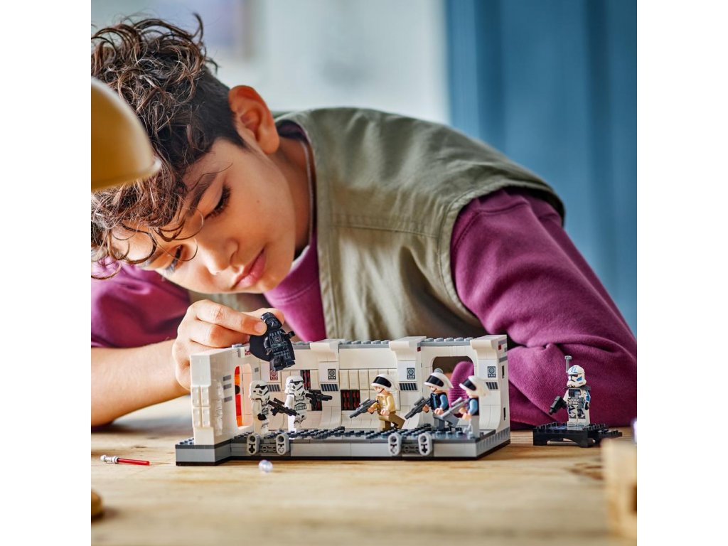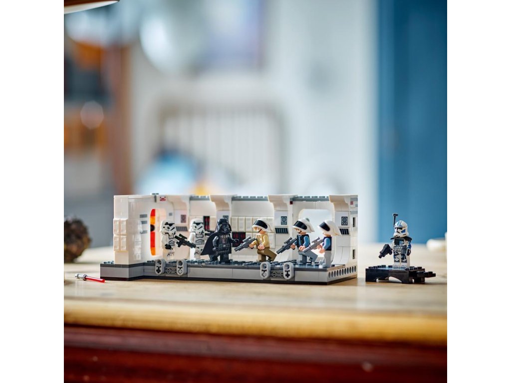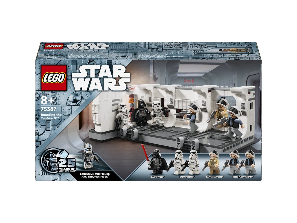 Znovu prožijte scénu, ve které se Darth Vader se Stormtroopery nalodí na vesmírnou loď Tantive IV z filmu Star Wars: Nová naděje, s touto stavebnicí (75387) pro děti od 8 let. Součástí je propracovaná chodba na palubě Tantive IV, kde se Stormtroopeři Dartha Vadera utkají s vojáky flotily povstalců kapitána Antilly. Nechybí páčky, pomocí kterých „rozrazíte“ vstupní dveře a během bitvy porazíte postavy. Spojovače umožní stavitelům připojit další stavebnici 75387 (prodává se samostatně) a rozšířit tak chodbu.