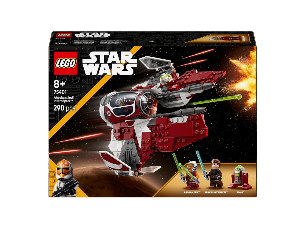 Děti si postaví vlastní strhující dobrodružství ze světa Star Wars: Klonové války se stavebnicí Ahsoka a jediská stíhačka Interceptor™ (75401). Tato parádní stavebnice LEGO® Star Wars z kostek představuje skvělý dárek pro kluky, holky a fanoušky od 8 let a pyšní se otevíracím kokpitem, nastavitelnými křídly pro režim útoku a cestovní režim a 2 pružinové vystřelovače. Stavebnice obsahuje 2 minifigurky LEGO Star Wars – Ahsoku Tano a Anakina Skywalkera se světelnými meči a navíc figurku LEGO droida R7-A7 pro fantastické hraní. Ahsoku lze umístit do kokpitu jediské stíhačky. Na palubě je místo pro R7-A7 a úložiště pro Ahsočiny světelné meče.