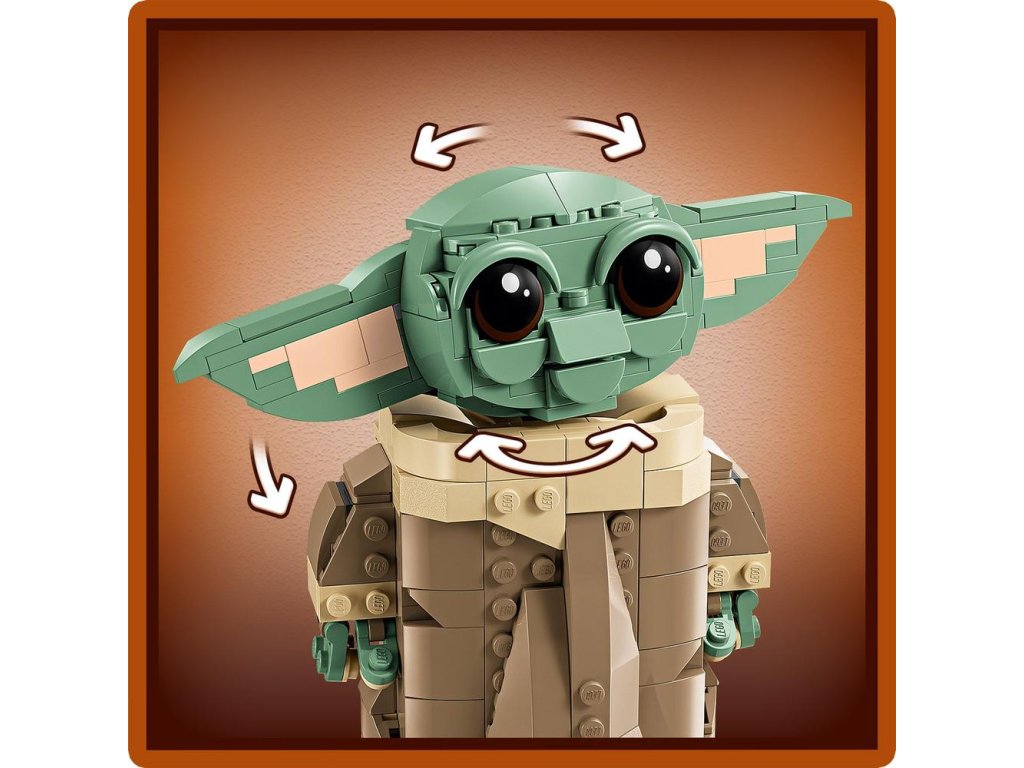 • Sestavitelná figurka Grogua má paže ovládané otočným knoflíkem a pohyblivou hlavu a uši