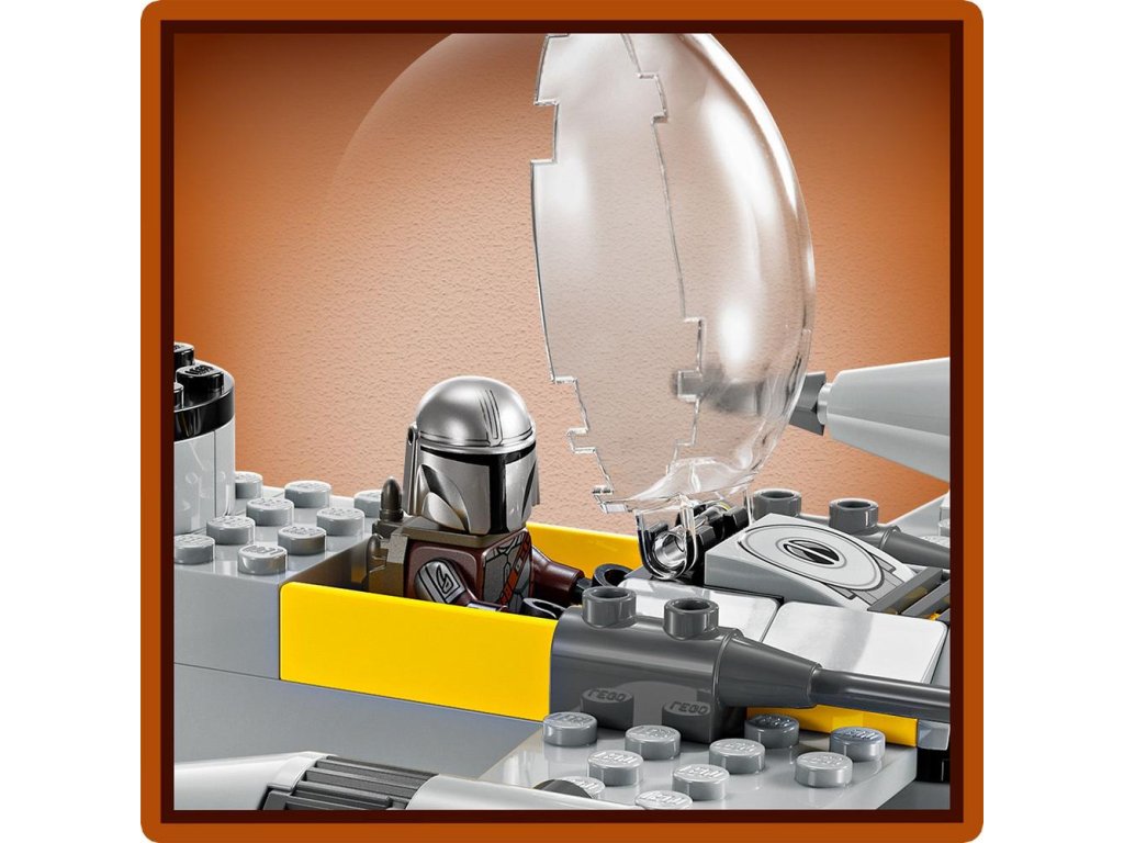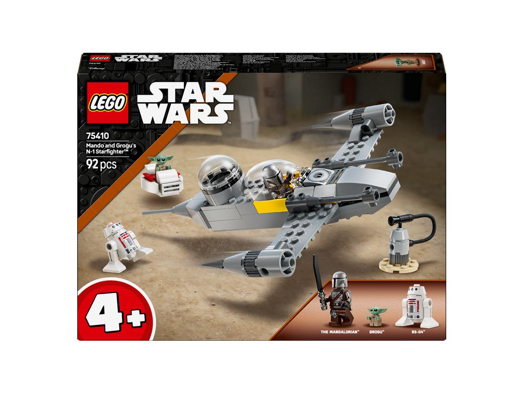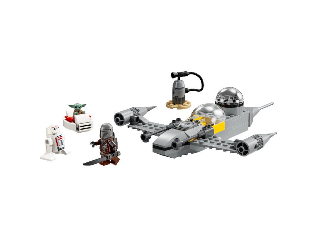 Tato stavebnice stíhačky N-1 obsahuje 3 postavy LEGO Star Wars: Mandaloriana s temným mečem a jetpackem, Grogua s vznášejícím se kočárkem a R5-D4. Posaďte Mandaloriana do otevíracího kokpitu stíhačky N-1 a Grogua do prostoru pro cestující vzadu.