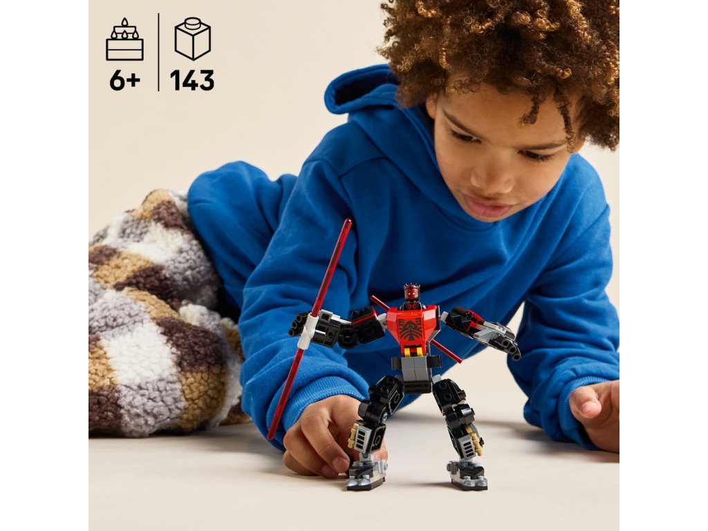 Děti a fanoušci od 6 let objeví temnou stranu Síly se stavebnicí LEGO® Star Wars™ (75411) Darth Maul™ a jeho robotický oblek. Tento snadno sestavitelný pohyblivý robotický oblek vypadá jako Darth Maul v bitvách o planetu Mandalore v seriálu Star Wars: Klonové války. Robotický oblek má otevírací kokpit pro minifigurku LEGO Star Wars Dartha Maula, klip na červený světelný meč s dvojitým ostřím pro minifigurku a ruce, které drží velký červený světelný meč s dvojitým ostřím. Připojte na zadní část robotického obleku průzkumného droida LEGO Star Wars a užijte si ještě větší porci zábavného hraní na postavy. Darth Maul a jeho robotický oblek je součástí řady robotických obleků LEGO Star Wars (prodávají se samostatně) a představuje skvělý dárek pro děti a fanoušky k jakékoli příležitosti. Stavebnice obsahuje 143 dílků.