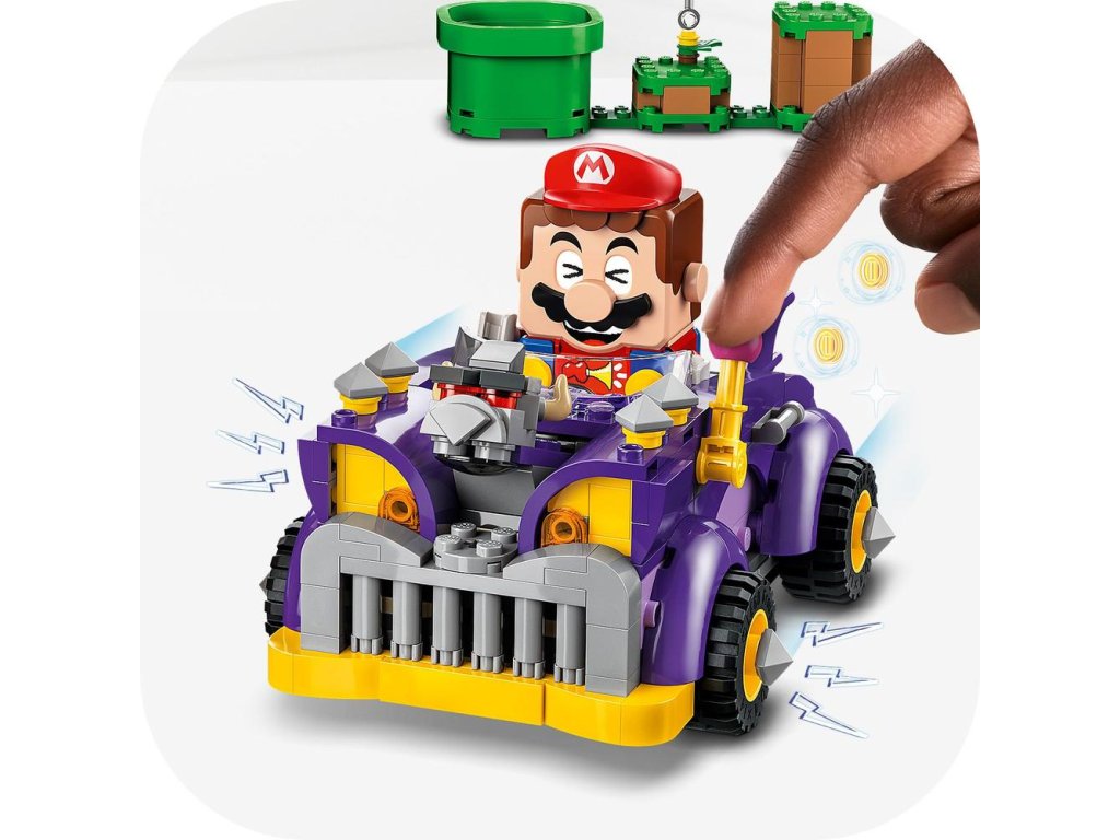 Pro interaktivní herní zážitek je potřeba přidat figurku LEGO® Maria, LEGO® Luigiho nebo LEGO® Peach™ ze startovacího setu LEGO Super Mario (71360, 71387 nebo 71403 – prodávají se samostatně). Posaďte interaktivní figurku na místo řidiče, poslechněte si zvuky klaksonu, běžícího motoru nebo skřípání pneumatik a získejte digitální mince.
