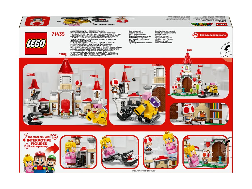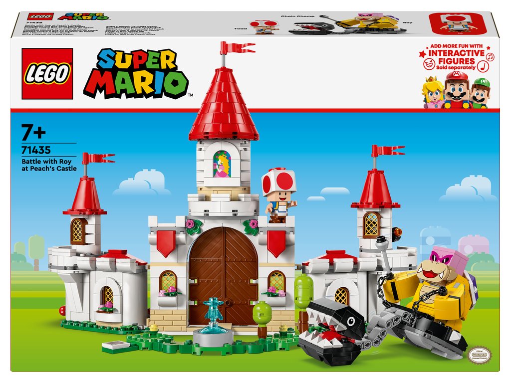 Se setem LEGO® Super Mario™ (71435) Bitva s Royem na hradě Peach se děti mohou těšit na hodiny objevování, bojování a přehrávání příběhů ze slavné lokality ze světa hry Super Mario™. Tento set s postavičkami Nintendo® představuje skvělý dárek pro holky, kluky a milovníky videoher od 7 let a součástí je model hradu princezny z kostek LEGO, který lze otevřít pro snadnější přístup během herních dobrodružství. Má snadno přestavitelné zdi, které se při obléhání rozpadnou, věž, katapult, otočný trůn a fontánu na zahradě. Součástí jsou také 3 figurky LEGO Super Mario: Roy (poprvé v setu LEGO Super Mario), Chain Chomp a Toad.