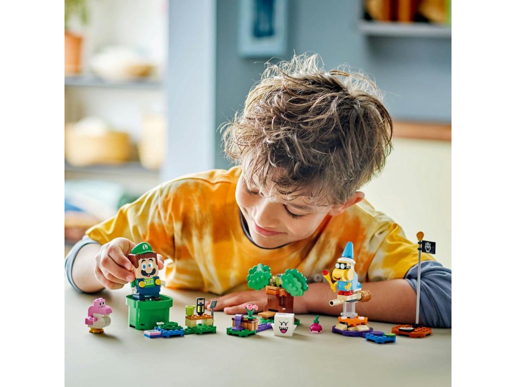 Užijte si zábavná dobrodružství při objevování zahrady s interaktivním LEGO® Luigim v tomto setu LEGO® Super Mario™ pro děti (71440). Tento set je úžasný dárek Nintendo® pro kluky, holky a hráče od 6 let a obsahuje interaktivní figurku LEGO Luigiho, a k tomu navíc Kameka, růžového Malého Yoshiho a Booa. Putujte od startovacího potrubí k cílové vlaječce prostřednictvím 3 zahradních modelů, spouštějte digitální reakce LEGO Luigiho a sbírejte po cestě mince. Navštivte růžového Malého Yoshiho a vybavte se nářadím. Porazte Booa, který se skrývá na stromě, a „snězte“ ovoce. Vyskočte na Mushroom, svrhněte dolů Kameka a odleťte na jeho koštěti.