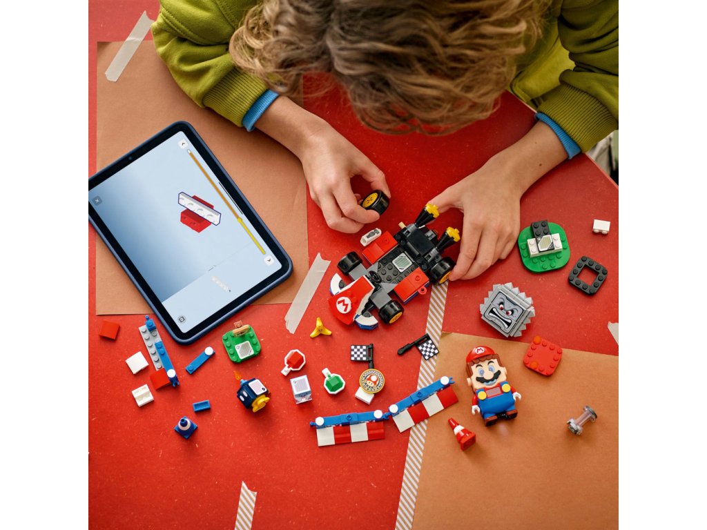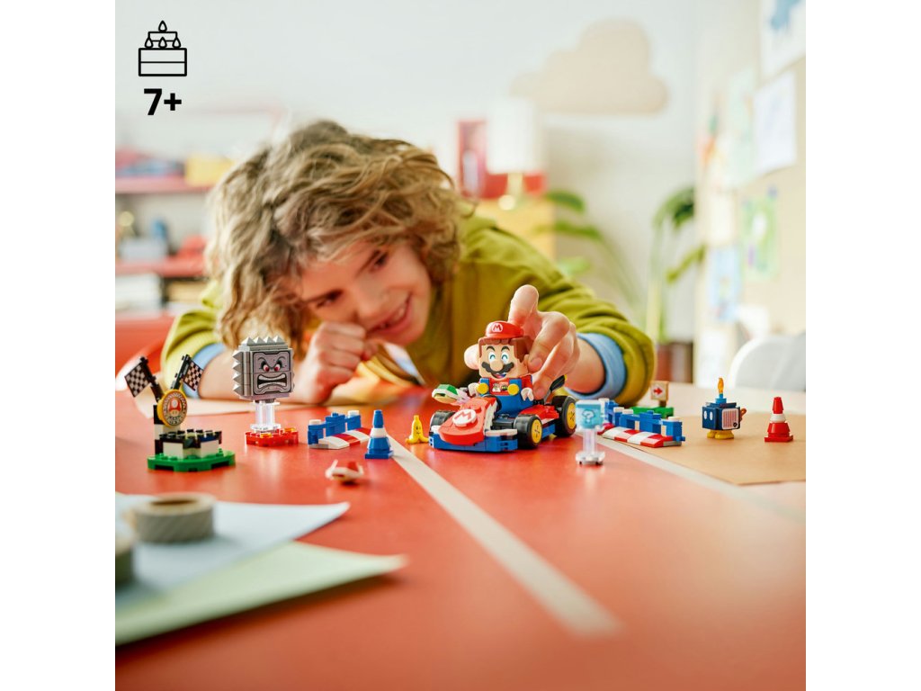 Děti si s touto stavebnicí Mario Kart™ (72043) z kostek vytvoří vlastní závodní dráhu a společně s LEGO® Mariem v motokáře Standard Kart se vydají na interaktivní závody. Fantastická stavebnice LEGO® Super Mario™ pro kluky, holky a gamery od 7 let obsahuje interaktivní figurku LEGO Maria a Standard Kart s funkcí driftování a střílení krunýřů pro zábavné závodění a hraní. Součástí závodní dráhy je také startovní dráha, připojitelné bariéry, dopravní kužely a kruh vítězů. Řiďte Standard Kart s LEGO Mariem a aktivujte zvuky a vizuální efekty Mario Kart, získejte digitální odměny z krabice Item Box, porazte Bob-omba a Thwompa a sledujte, jak LEGO Mario reaguje na zelené a červené destičky LEGO. Objevte celou řadu stavebnic LEGO Super Mario: Mario Kart (prodávají se samostatně) a získejte další vozidla a postavy pro ještě větší porci zábavy. Návod na stavění najdete v krabici nebo v aplikaci LEGO Super Mario. Tato stavebnice obsahuje 278 dílků.Dodatočné parametre