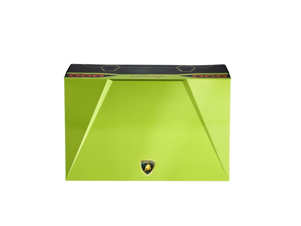 - Sestavitelný model sportovního vozu v měřítku 1:8má ikonickou limetkově zelenou barvu, zlaté ráfky kol a další propracované prvky. Měří přibližně 13 cm, na výšku, 60 cm na délku a 25 cm na šířku.