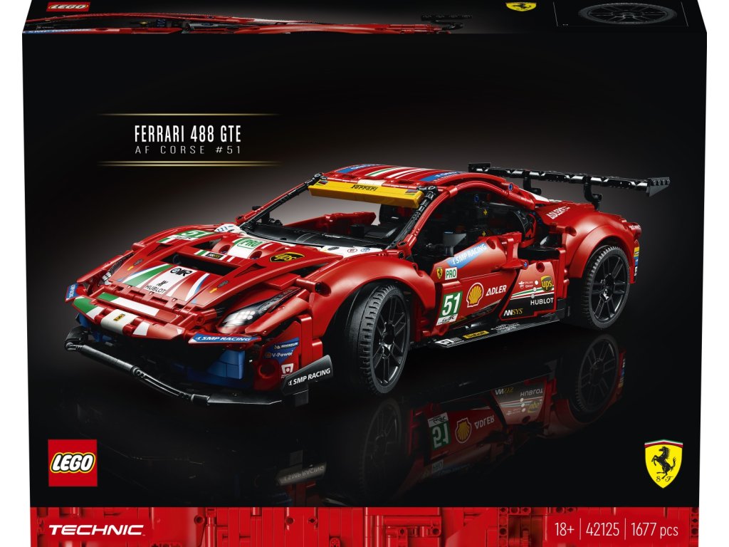 - Díky originálním závodnickým nálepkám a autentické barevné kombinaci zaujme model Ferrari 488 GTE „AF Corse #51” (42125) přední místo na výstavce doma i v kanceláři každého fanouška motosportu.