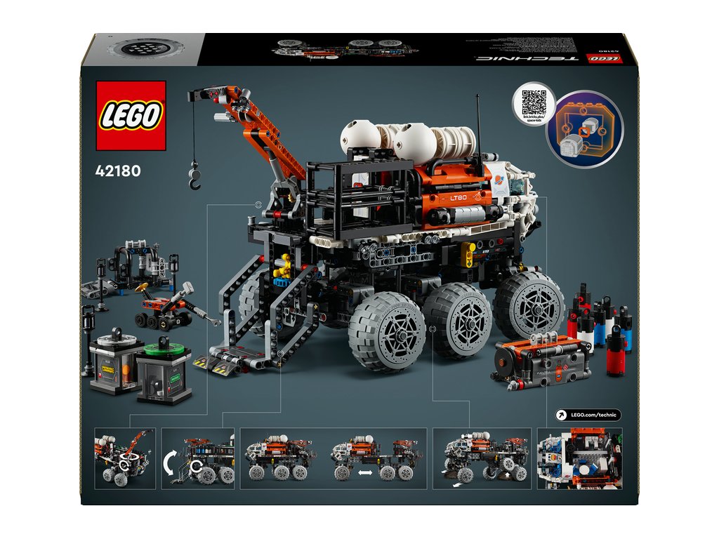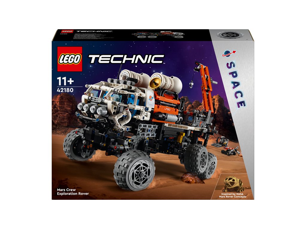 Inspirujte děti od 11 let k tomu, aby se dozvěděly více o misích na Mars se stavebnicí LEGO® Technic (42180) Průzkumné vozítko s posádkou na Marsu. Tato propracovaná stavebnice je plná realistických funkcí pro malé průzkumníky. Model lze rozložit a odhalit nákladní prostor. Děti otestují odpružení a nasměrují vozítko do správné polohy. Poté pomocí jeřábu zvednou robotické vozidlo, nástroje a palivový reaktor. V obytném prostoru pro posádku najdete sedadla, sprchu, toaletu, běžecký pás a lednici. Ve vozidle nechybí funkční výtah, nádoby na recyklaci a vzorky a kanystry na plyn a vodu.