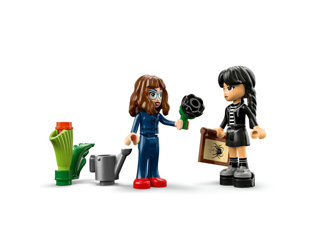 Stavebnice LEGO® Wednesday (76784) Černá jiřina představuje elegantní výstavní kousek pro milovníky botaniky a designu od 9 let. Tato bytová dekorace obsahuje černou jiřinu s listy a světle fialovými pupeny a vázu, která připomíná miniaturní zimní zahradu. Po sestavení můžou děti odejmout květ jiřiny, odemknout vázu a odhalit učebnu uvnitř, ve které najdou odnímatelné lavice, stoličku a další doplňky pro vyprávění příběhů. Součástí stavebnice jsou také minipanenky Wednesday Addamsové a profesorky Marilyn Thornhillové na hraní na postavy. Tato sada potěší malé milovníky dobrodružství a tajemství a představuje skvělý dárek k narozeninám nebo k Halloweenu pro holky, kluky a fanoušky seriálu Wednesday. Nenechte si ujít další stavebnice LEGO Wednesday (prodávají se samostatně) pro ještě více herních možností. Aplikace LEGO Builder provede starší děti nebo fanoušky intuitivním stavitelským dobrodružstvím, umožní jim přibližovat a otáčet modely ve 3D, ukládat stavebnice a sledovat postup stavění. Stavebnice obsahuje 358 dílků.Dodatočné parametre