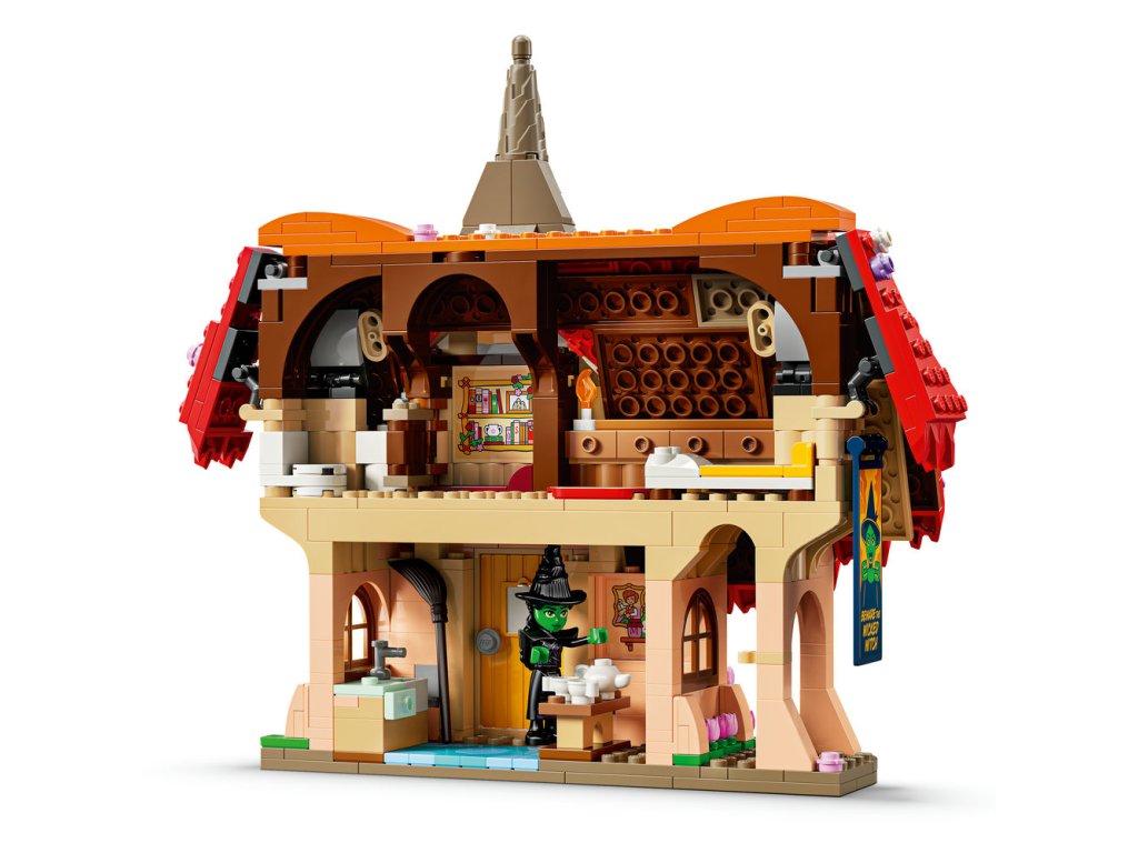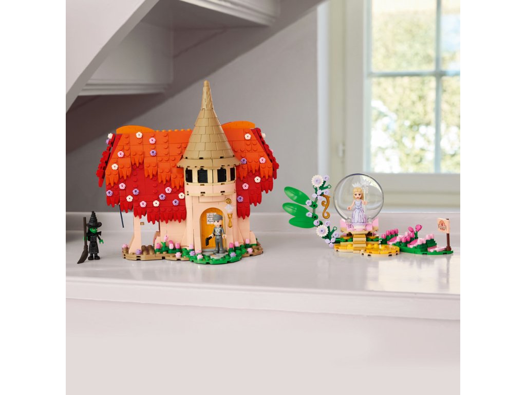• Sestavitelné hračky na hraní i na výstavku – Tato dekorace do dětského pokoje pro holky, kluky a další fanoušky Wicked obsahuje dvoupatrovou chatu LEGO® z kostek s krásnou červenou střechou a Glindin bublinový trůn