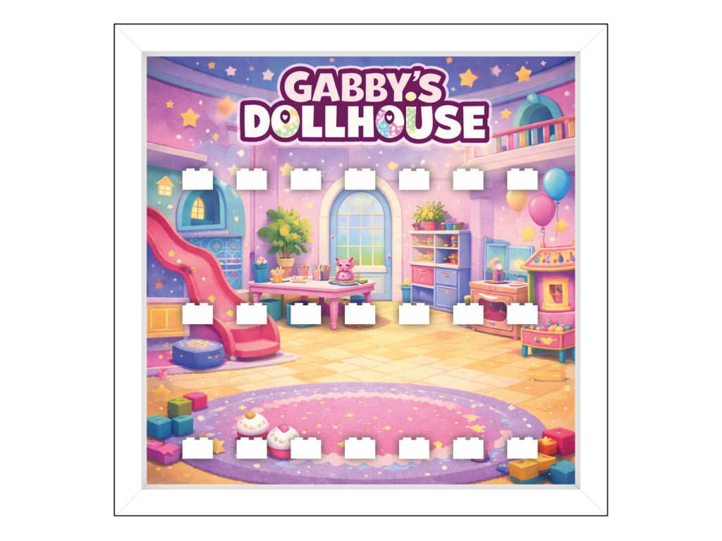 Rámeček na LEGO® Minifigurky: Gábinin kouzelný domek - bílý rám, bílé kostky (21 kostek)